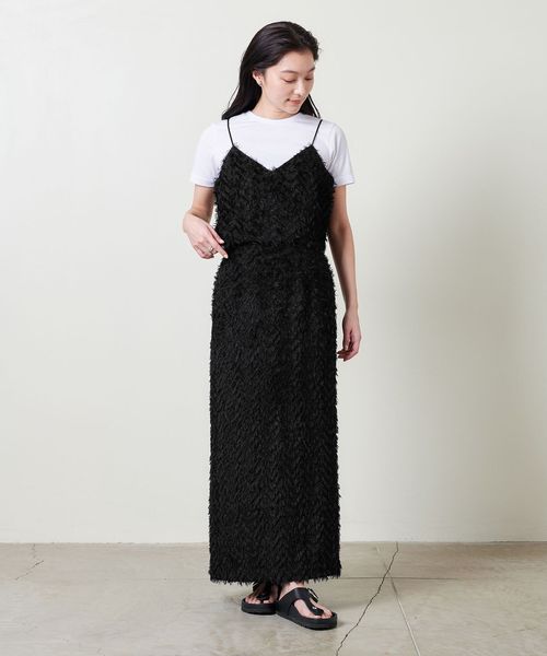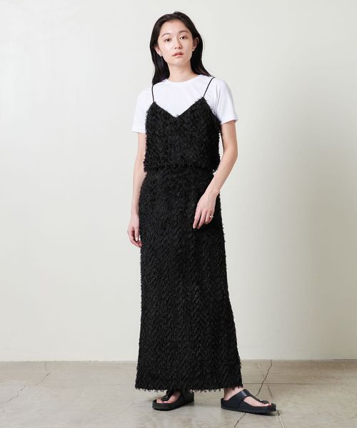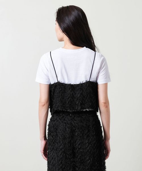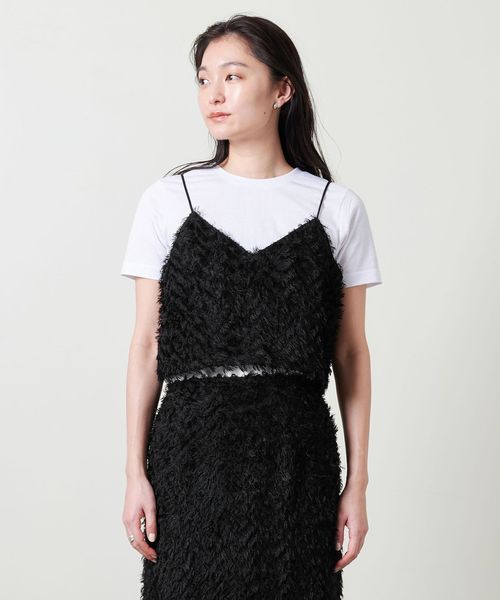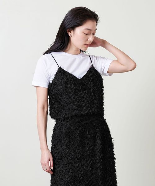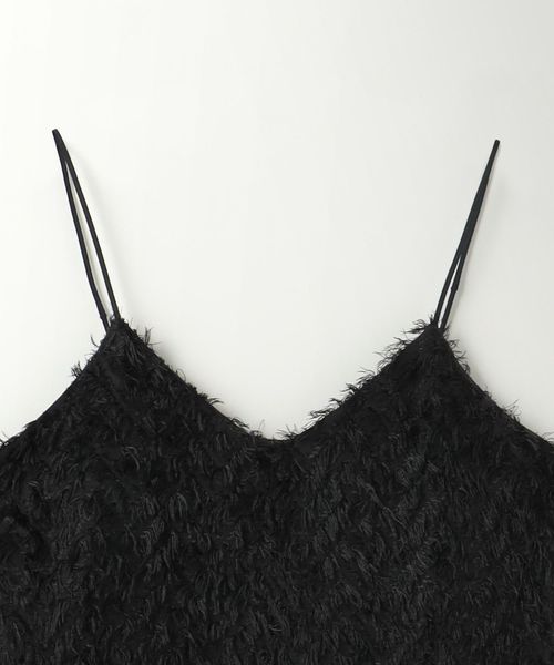 大胆なフリンジ調素材が目を惹くキャミソール。