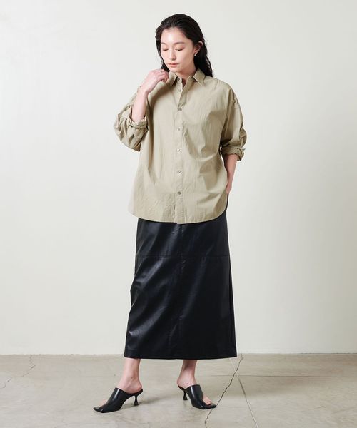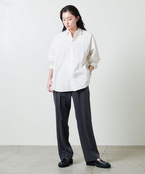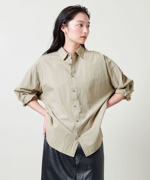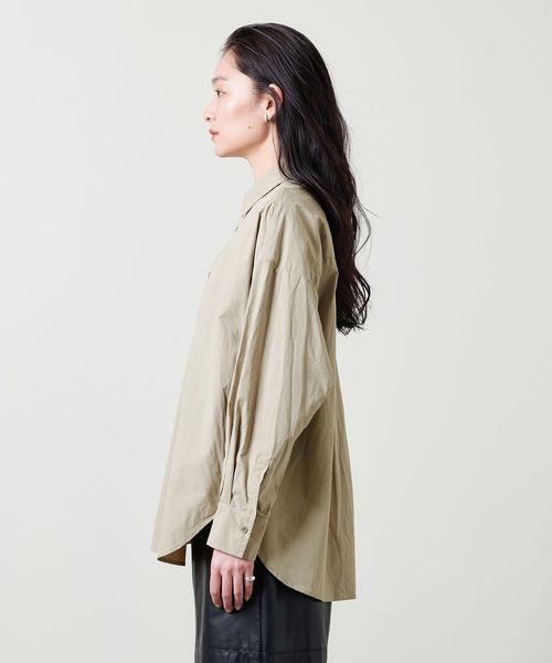 ハリのある素材を使用し、ビッグシルエットにデザインしたシャツ。