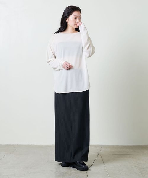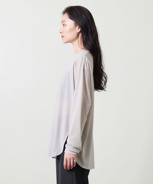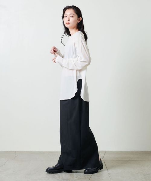 ラウンドヘムデザインとしっかり入ったサイトスリットをポイントに、ラインを拾わないシルエットでストレスフリーな着心地。