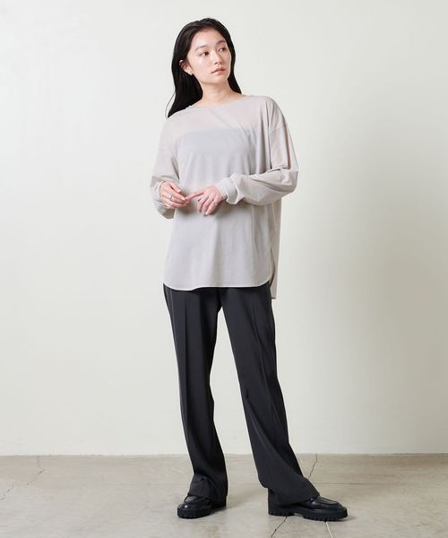 程よい開き具合のネックとチュニック丈が大人の抜け感を感じさせる一枚。