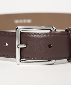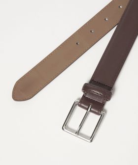 28mm幅の微光沢素材のベルトに、艶のあるシルバーカラーのスクエアバックルを配したオーセンティックなデザイン。