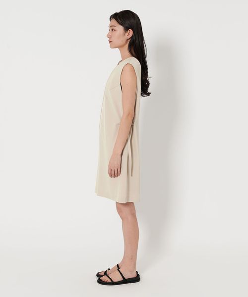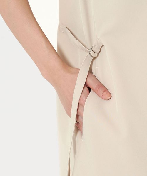 ウエストにサイドベルトを施し、ストレート、ウエストシェイプとシルエットをお好みで調整可能です。