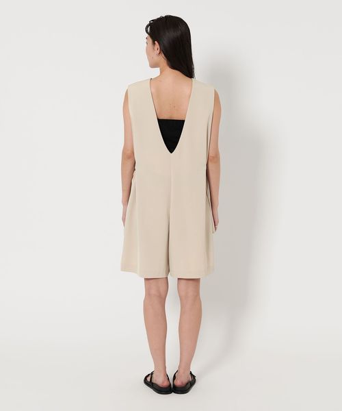 深いV開きのバックデザインがポイントのショート丈オールインワン。