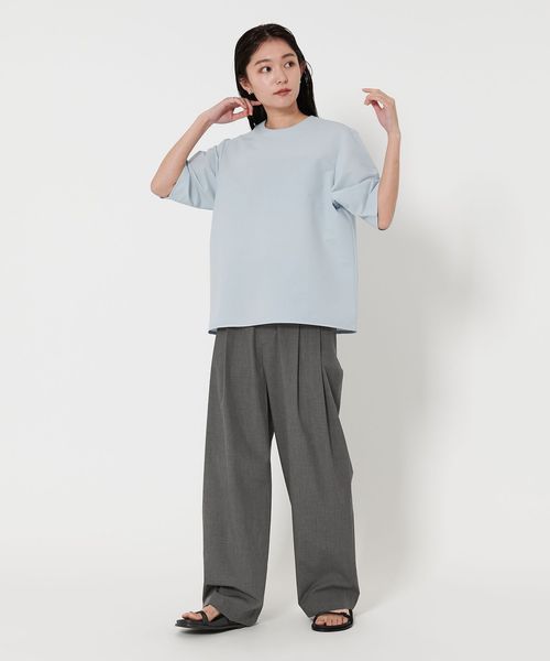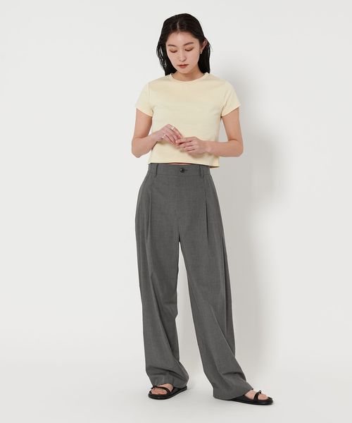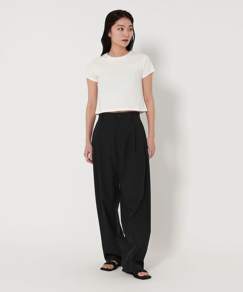 腰回りにゆとりをもたせつつ、程よいワイドテーパードシルエットがトレンドライクな印象に。