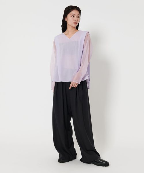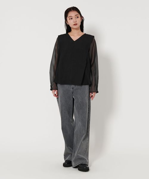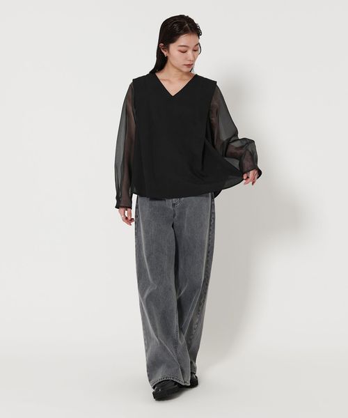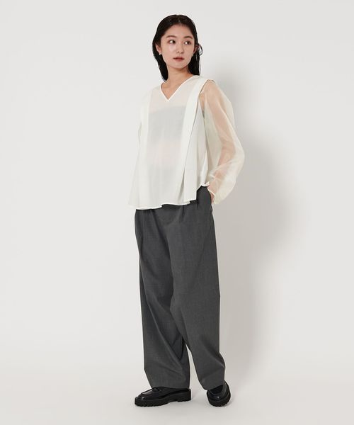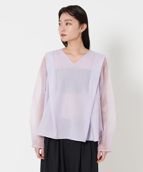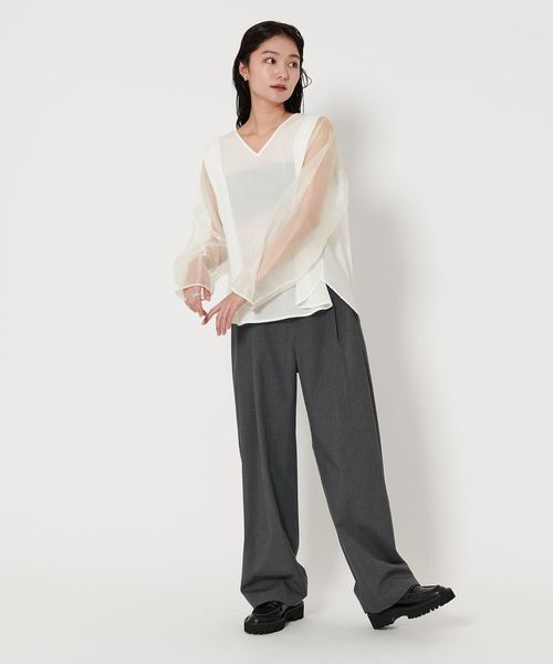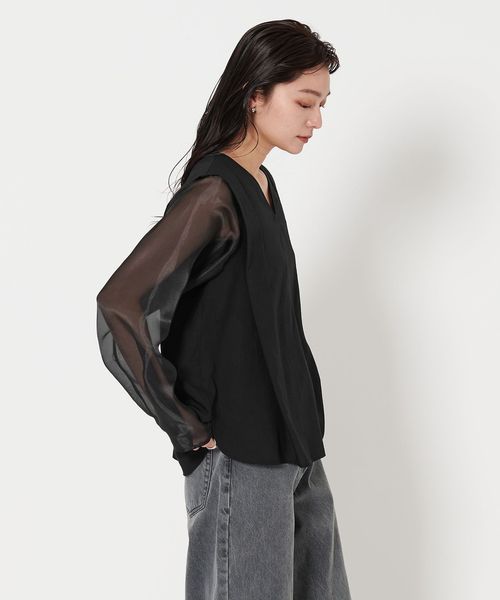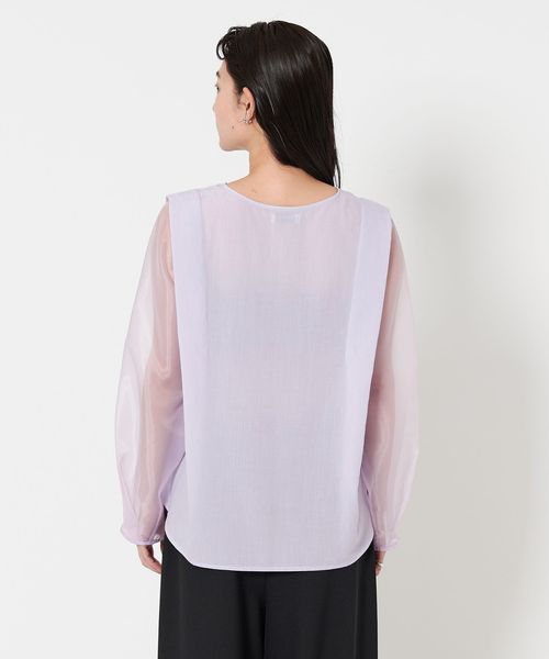 袖部分には透け感のあるオーガンジー素材を使用。