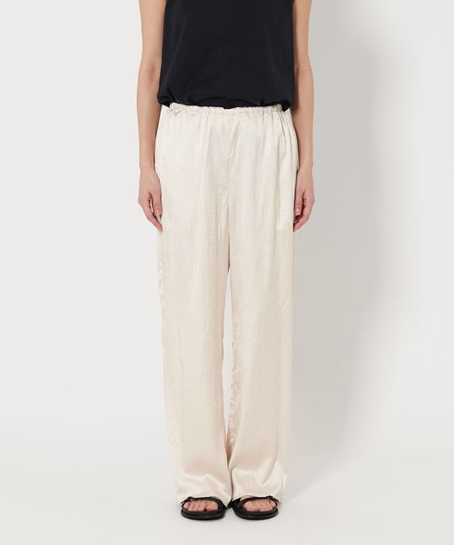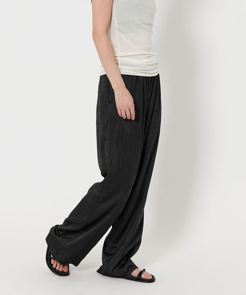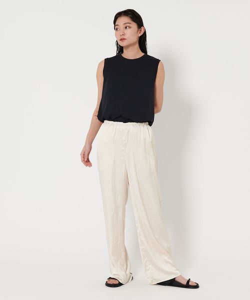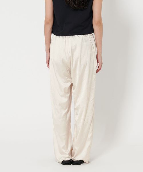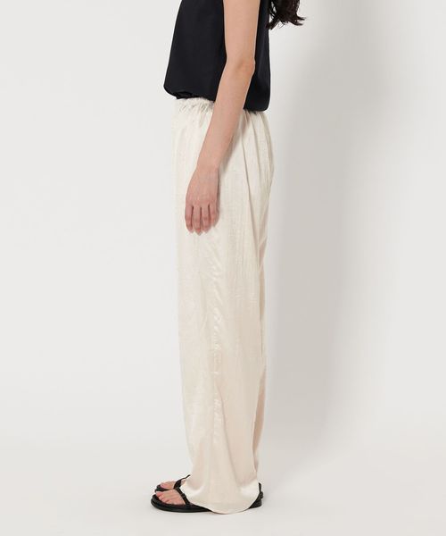 ニュアンスのある素材と光沢感が魅力のパンツ