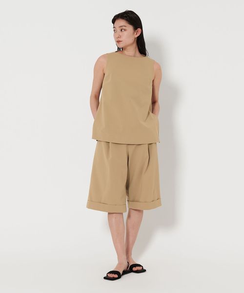 同素材のノースリーブブラウスと合わせてセットアップスタイルも素敵です。