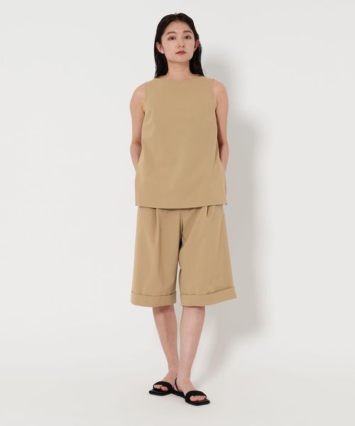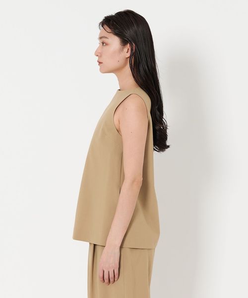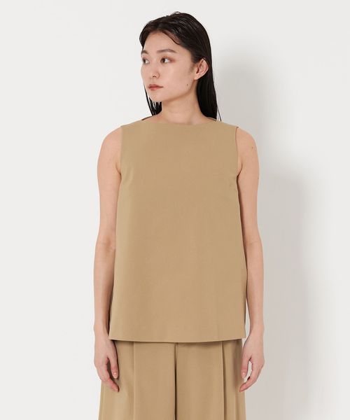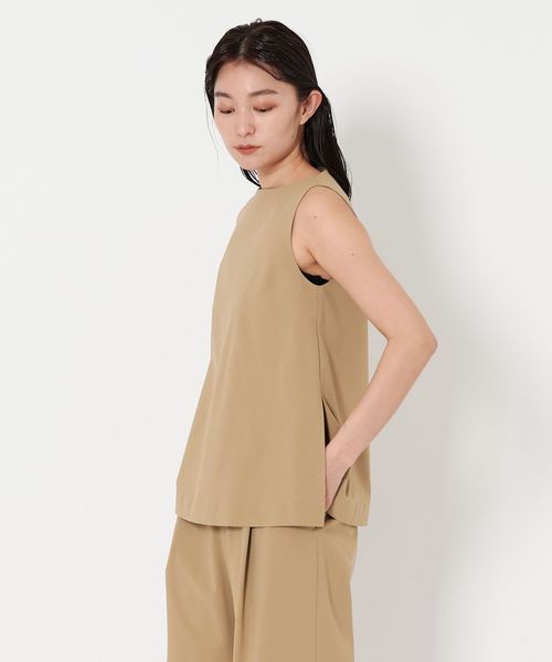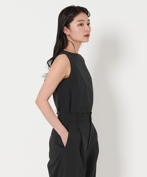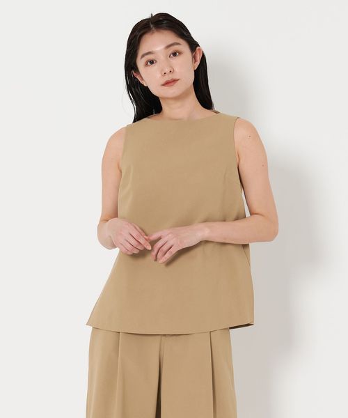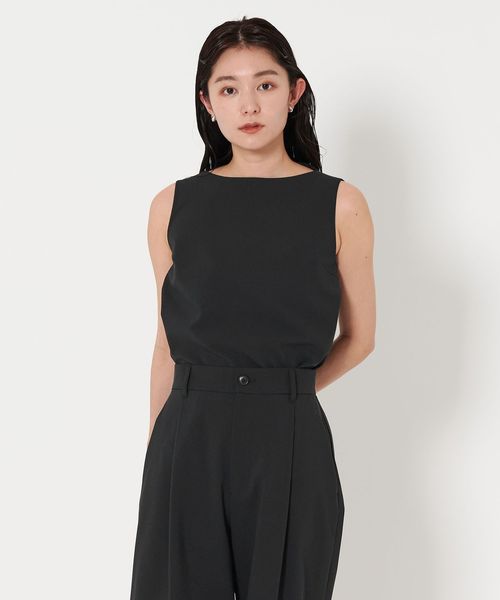 シンプルながら洗練されたムード漂うノースリーブブラウス。
