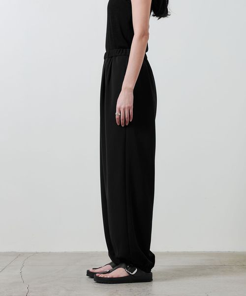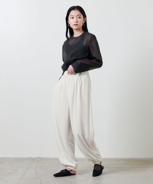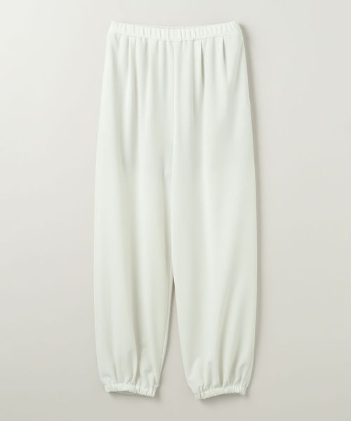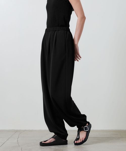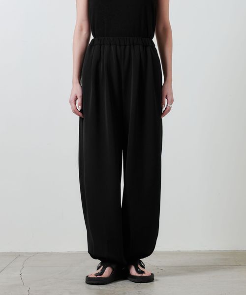 裾部分にタックを施しゴム仕様にすることで、着用した際に立体的に膨らむバルーンパンツ。