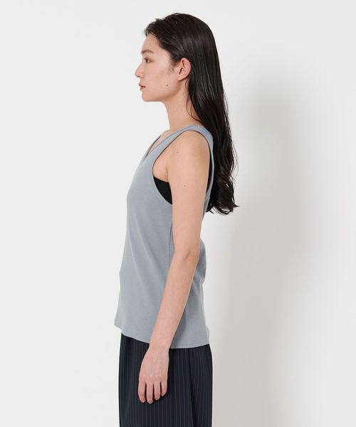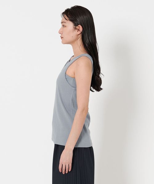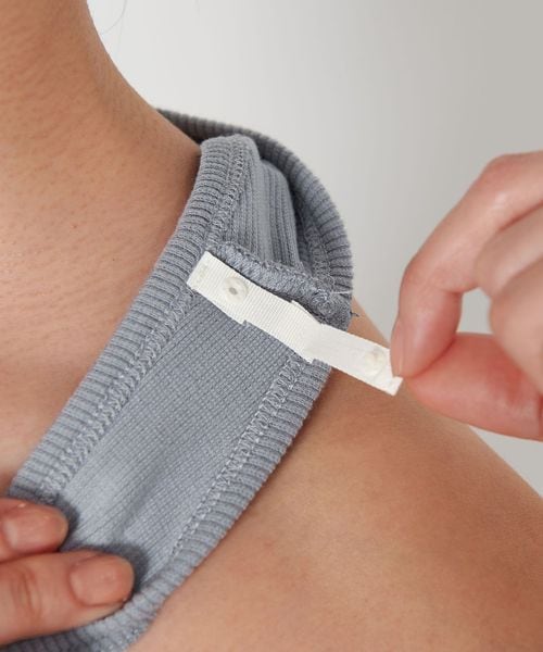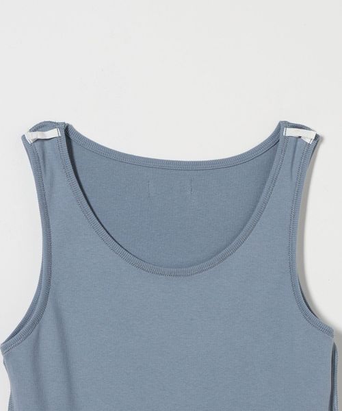 タンクトップには、ショルダー部分にインナーの肩紐を固定できる留め具が付いており、下着を気にすることなく着用いただけます。