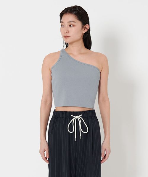 ワンショルダーとタンクトップの2枚重ね風のレイヤードデザインは、それぞれ単品でも着用できる3WAY仕様。