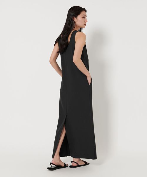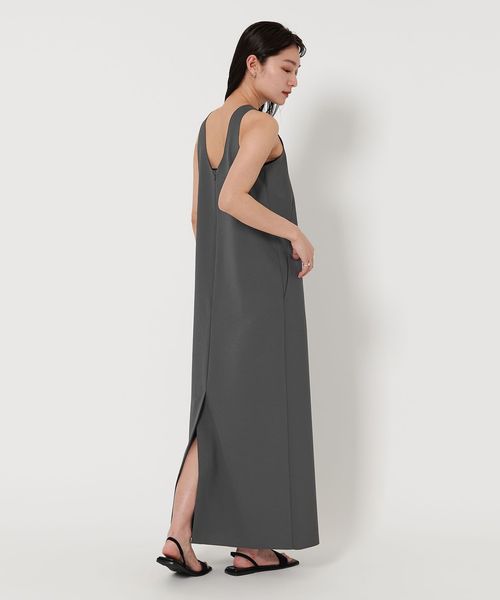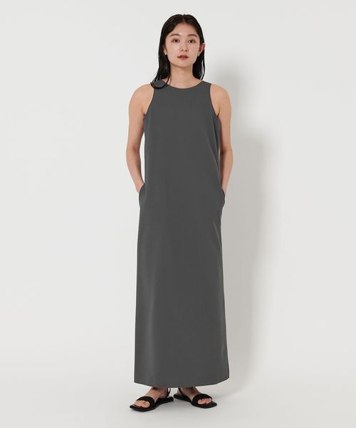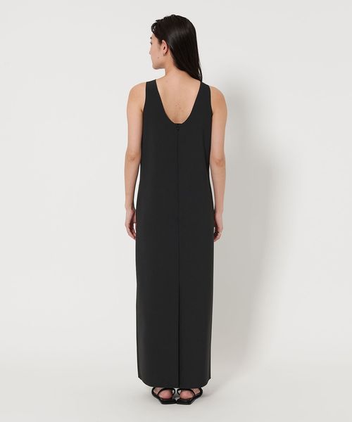 大胆に開いたバックスタイルがポイントのアメリカンスリーブのマキシ丈ワンピース。