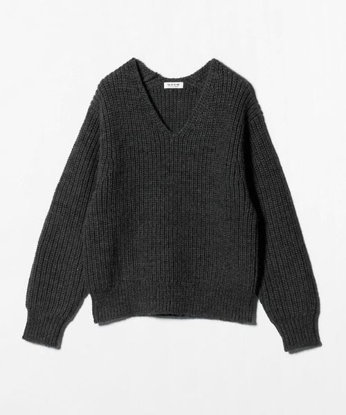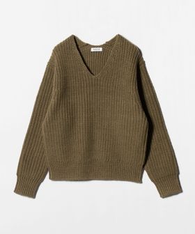 ざっくりとした畔編みが、程よい存在感を引き立てるVネックニット。