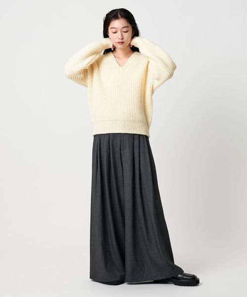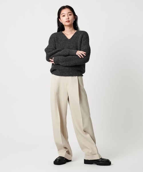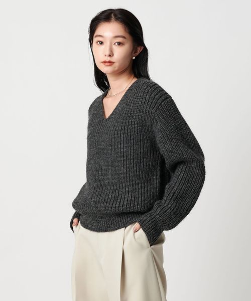 ざっくりとした畔編みが、程よい存在感を引き立てるVネックニット。