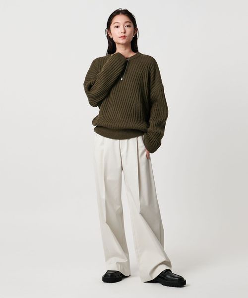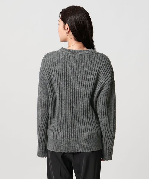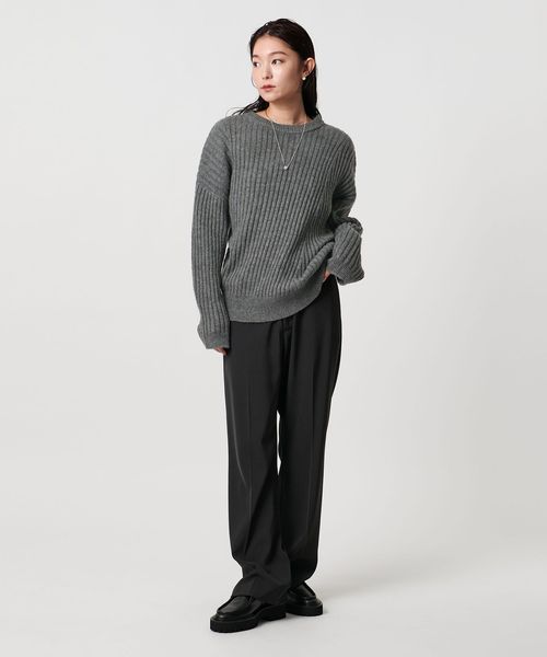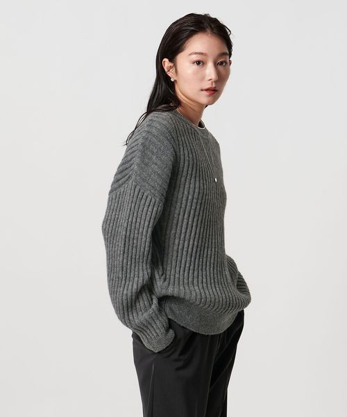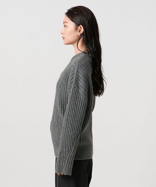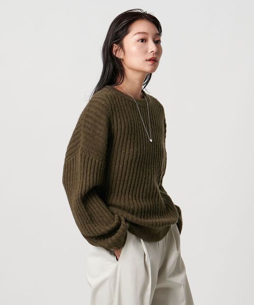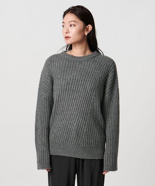 斜めに走るリブが特徴のニュアンスのある表情が魅力のニット。