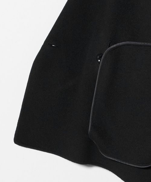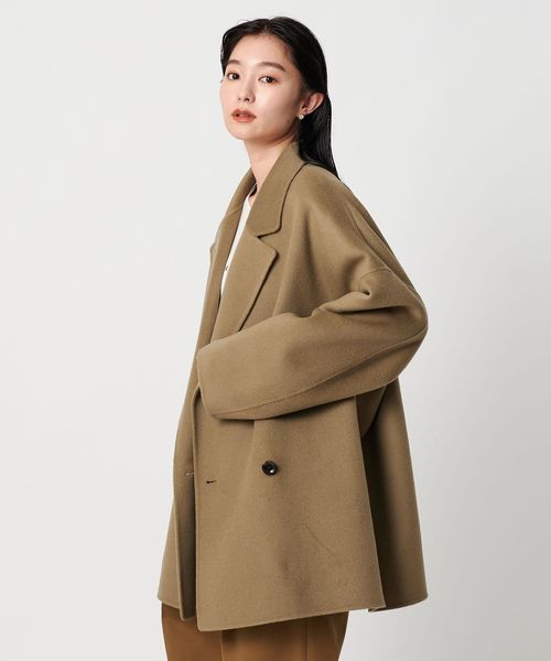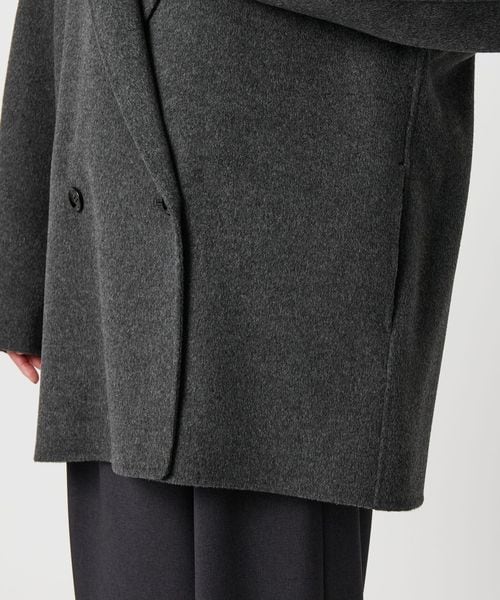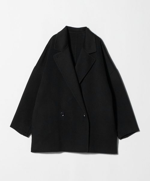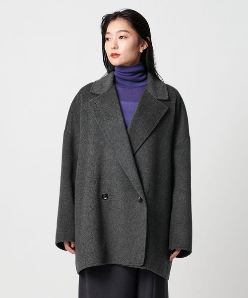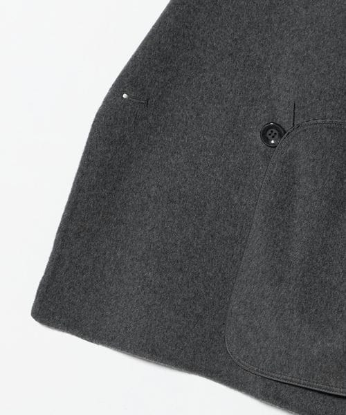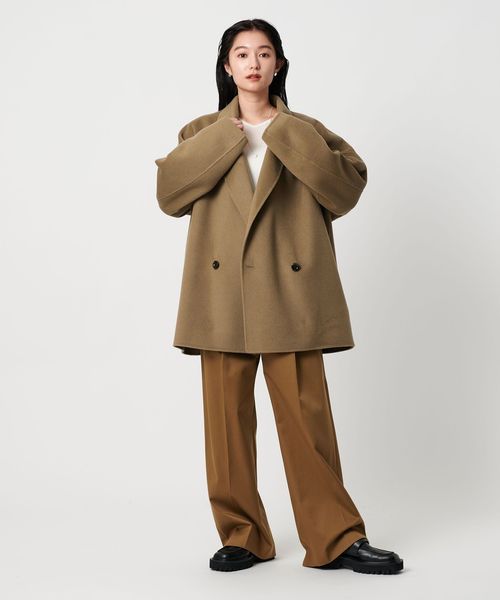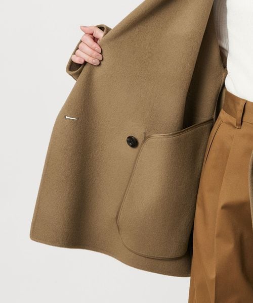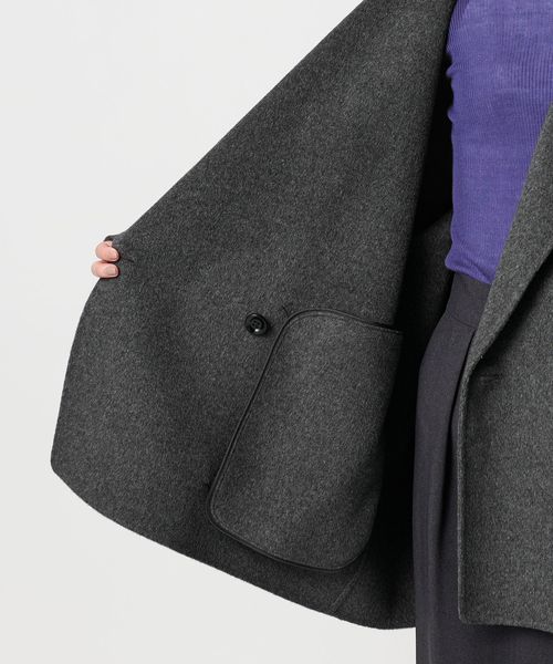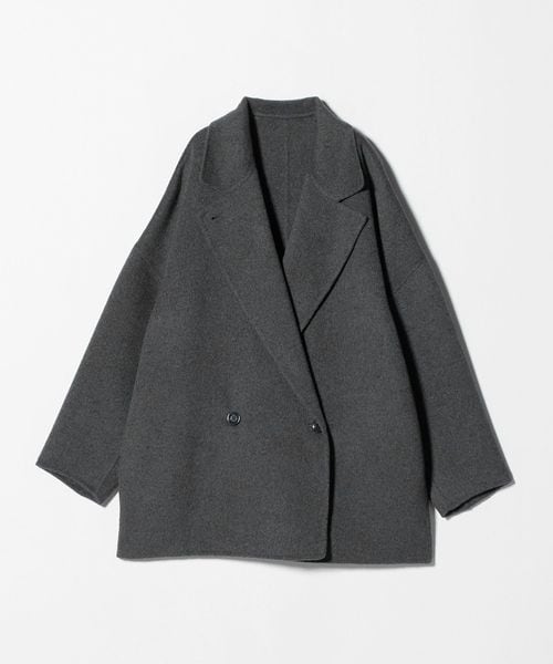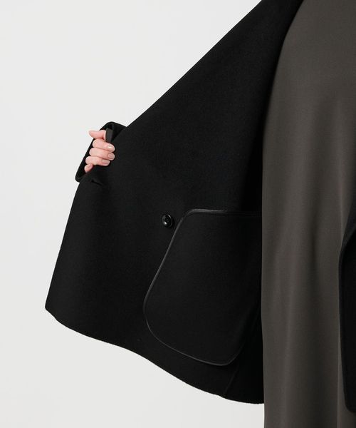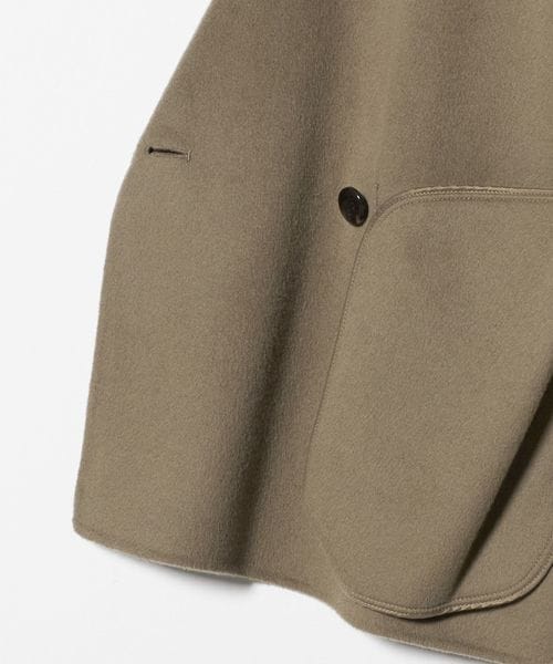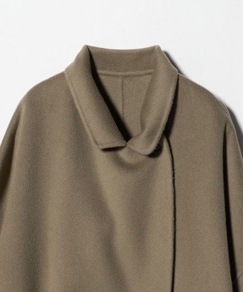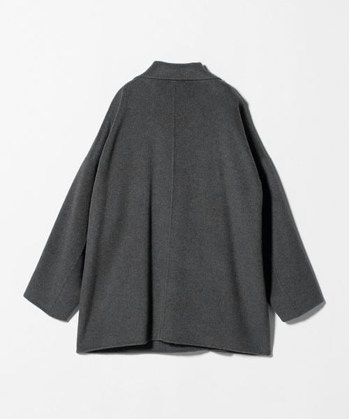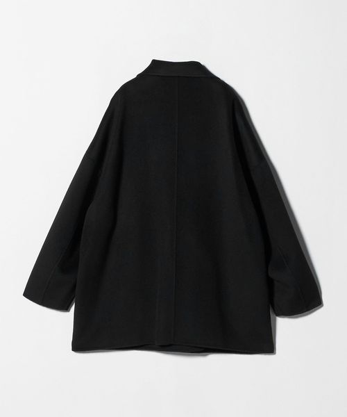 構築的なコクーンシルエットをそのままに、日常に使い勝手のよいミドル丈に仕上げたリバーコート。