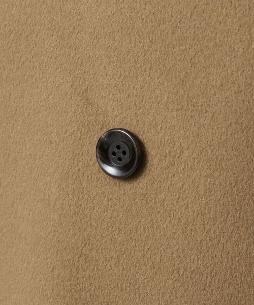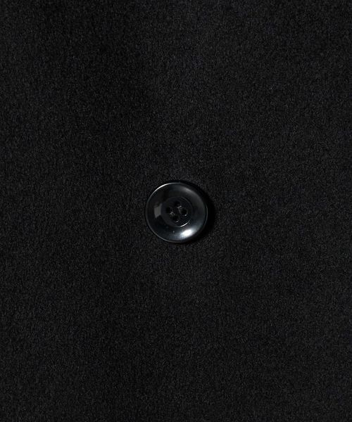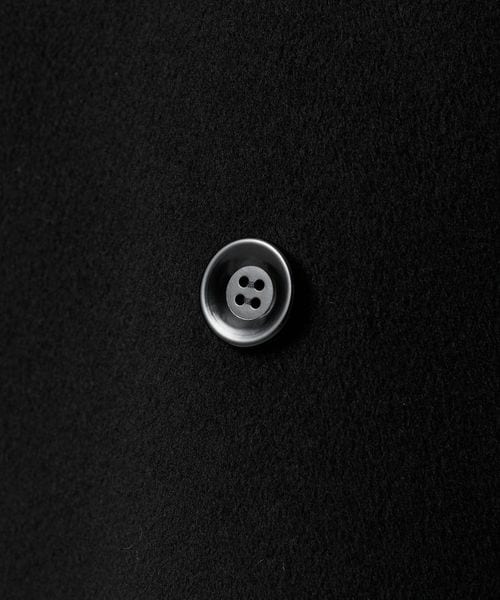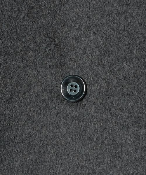 ラペル裏のボタンで襟元の表情を変えられ、モードなニュアンスを添えます。