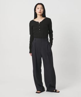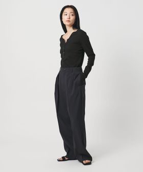 襟元の余白が、上品な抜けをつくるヘンリーネック