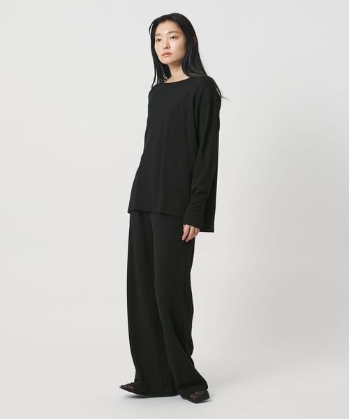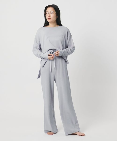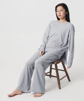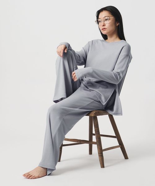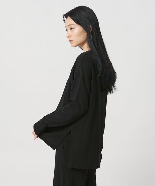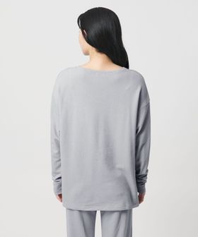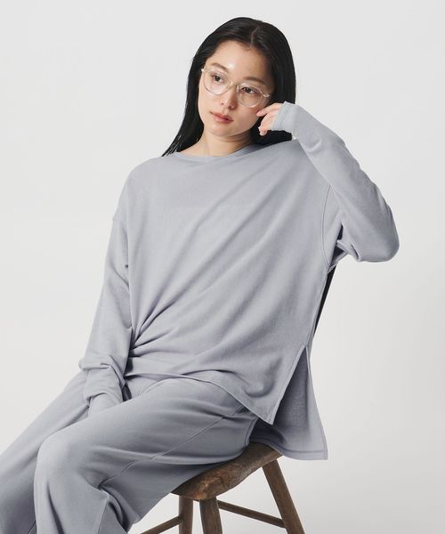 裏毛素材に軽い透け感を持たせ、柔らかな表情に仕上げたトップス。
