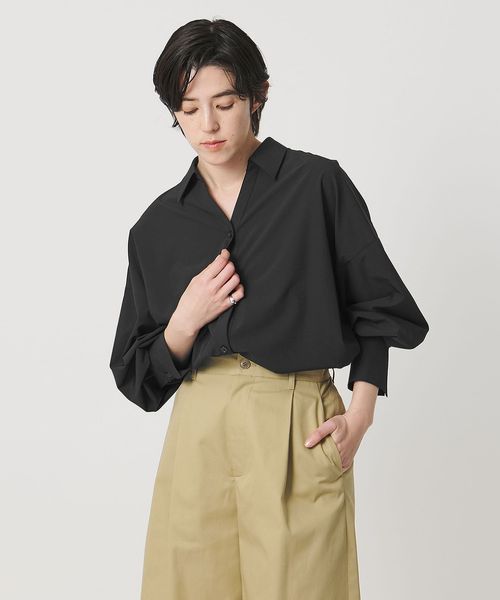 V開きのすっきりとしたラインと控えめなボリューム袖が、上品なバランスをつくります。