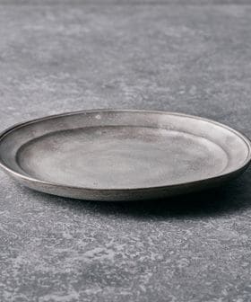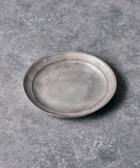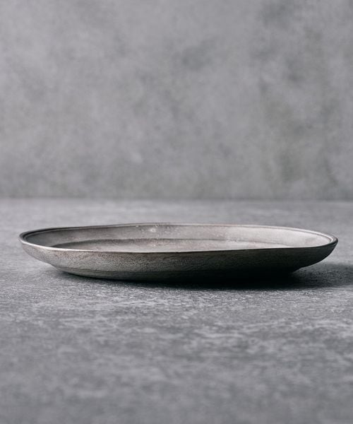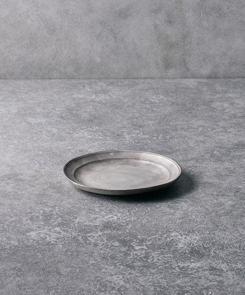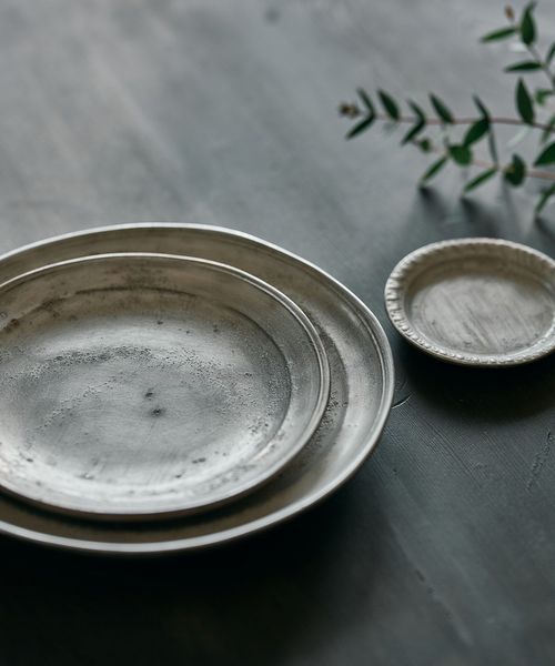 静かな光沢をまとった銀磁が、料理に余白をもたらす6寸リム皿