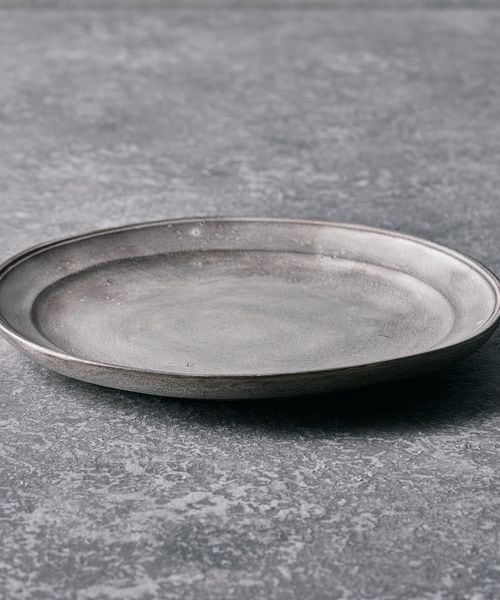 落ち着いた表情の銀磁が印象的な6寸リム皿。