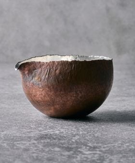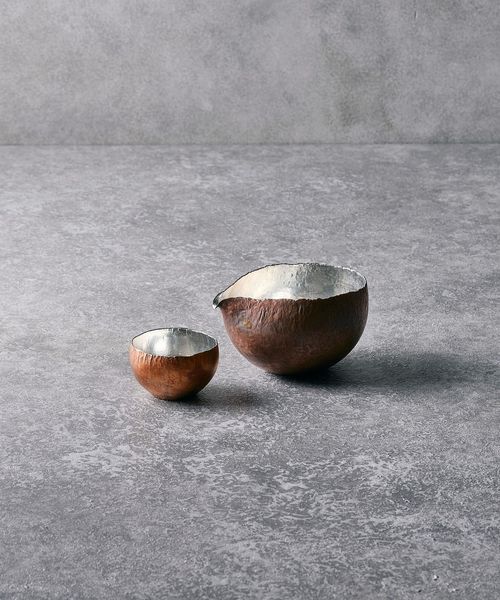 金属彫刻・鍛金の技法を背景に制作。「美しいかたちにはすべて意味がある」という思想のもと、自然に導かれた造形を大切にしています。