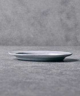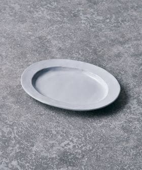 黒土に白い釉薬を掛けることで、ややグレーがかった落ち着きのある色合いに仕上げたオーバルプレート。