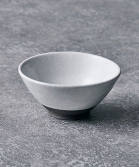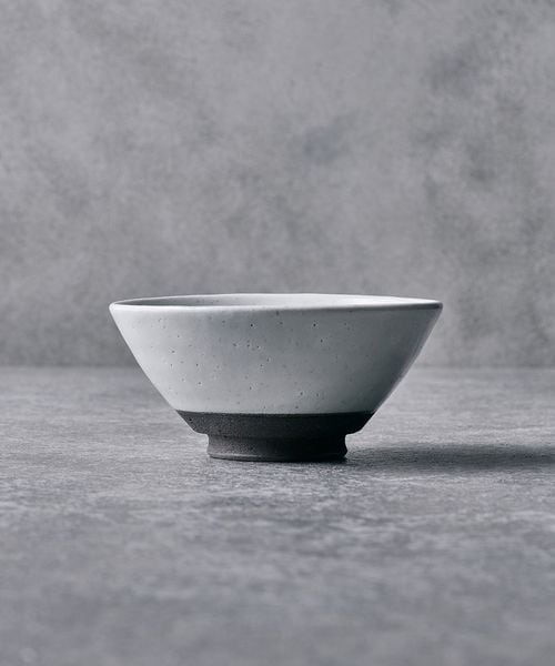 黒土に施釉された粉引が、落ち着きのあるしっとりとした表情を生み出す飯椀。主張しすぎない色合いで、料理を選ばず、日々の食卓に自然と溶け込みます。