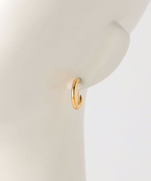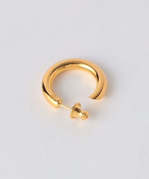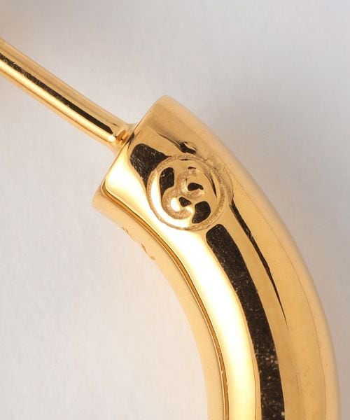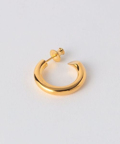 金属そのものの美しさが際立つ無垢な曲線美に、刀で斬りとったようなシャープなエッジラインがアイコニックなフープピアス。