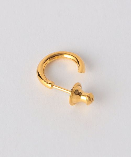 金属そのものの美しさが際立つ無垢な曲線美に、刀で斬りとった様なシャープなエッジラインがアイコニックなフープピアス。