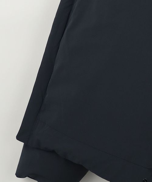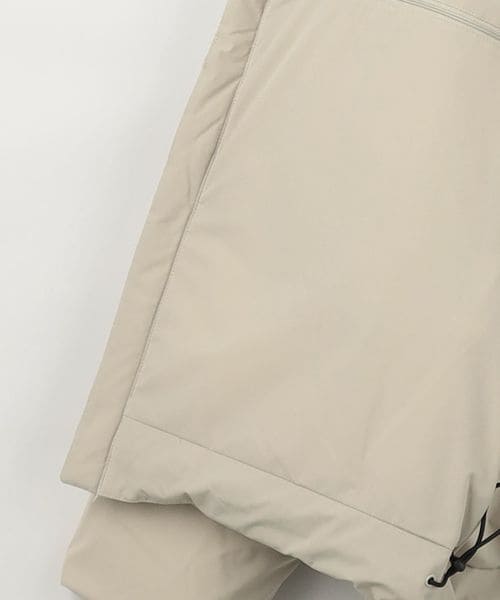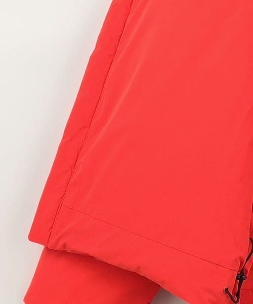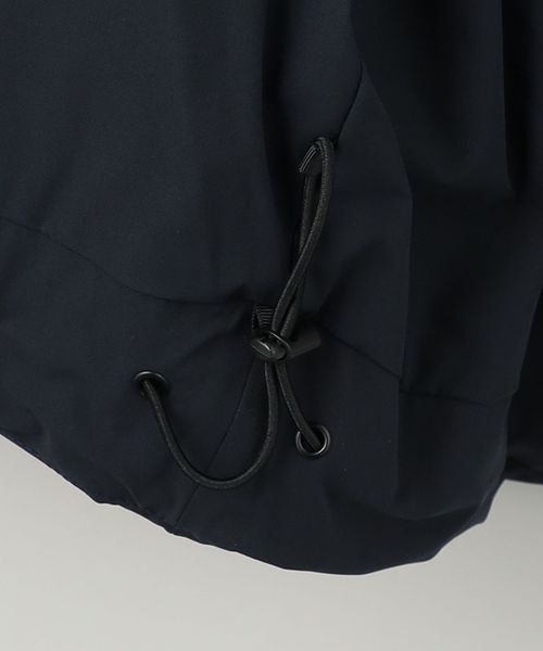 フルジップ仕様、サイドにシームポケットつき、裾はドローコードで調整可能。