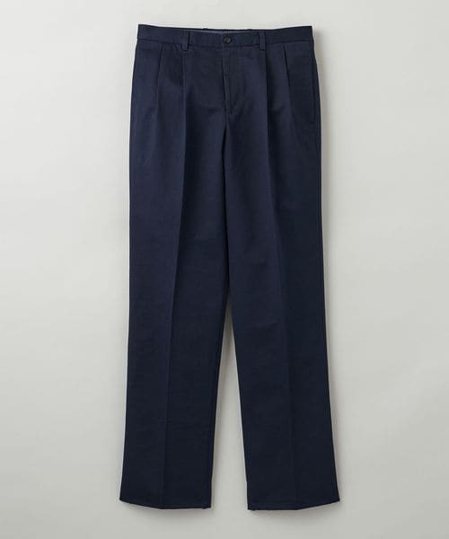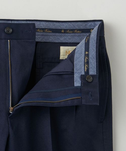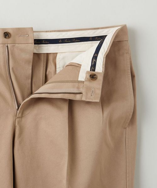 トンプソンは<Brooks Brothers>の中で定番として展開しているアドバンテージチノシリーズで最もゆとりのあるモデルであり、プリーツフロントでクラシックな太めのパンツという位置づけとして展開。