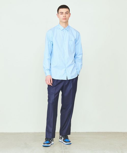 <NEAT>のデザイナー西野氏が<Brooks Brothers>販売員時代にパーソナルオーダーで作成したスラックスを、さらに裾幅を調整しテーパードを強めて着用されていました。