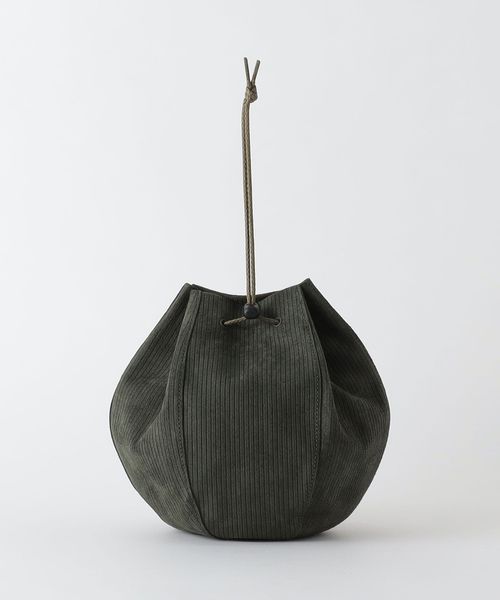 風合いあるコーデュロイ素材を用いた巾着型バッグ。