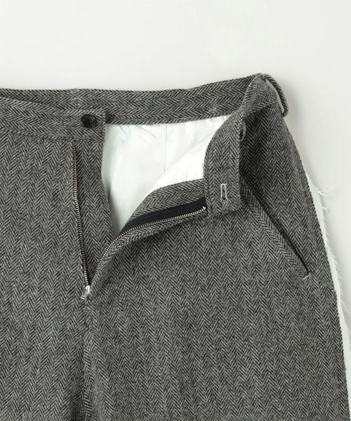 表情豊かなヘリンボーン柄のトラウザーズ。