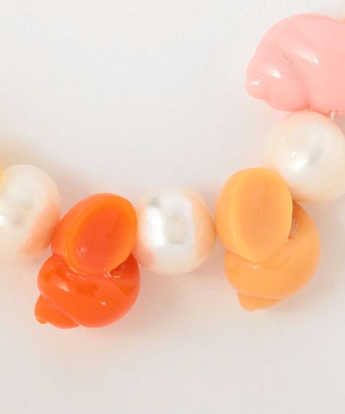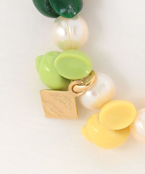 カラフルな貝殻モチーフやロゴパーツを組み合わせたブレスレット。