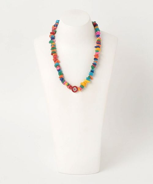 ロゴパーツを組み合わせたカラフルなネックレス。