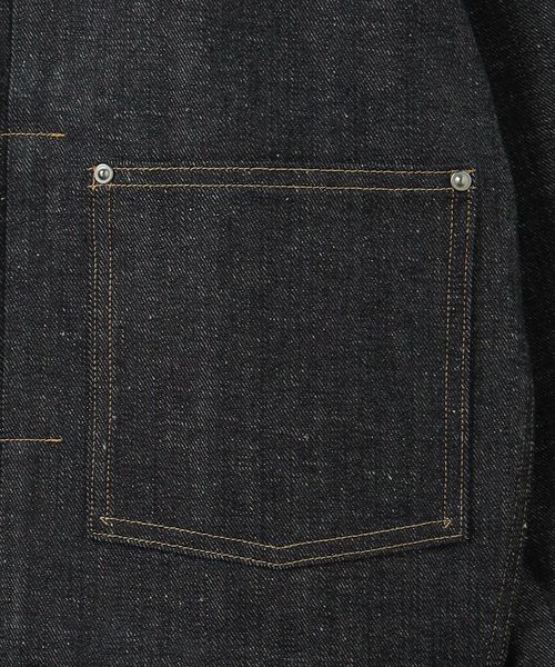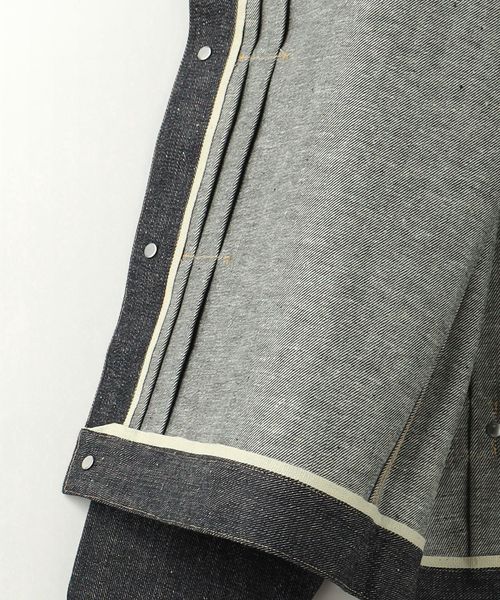 生地は白耳セルビッジデニム生地で、フロントフラップや袖口裏など各所に白耳を使用。