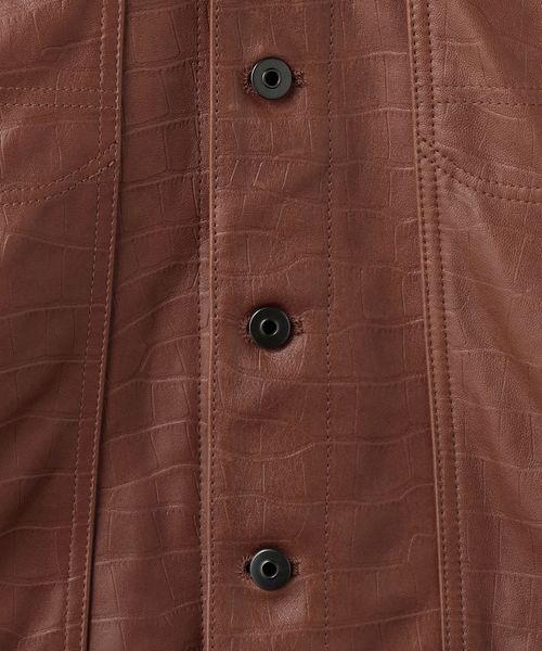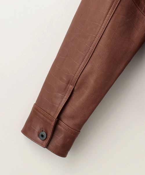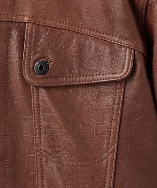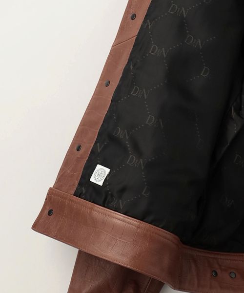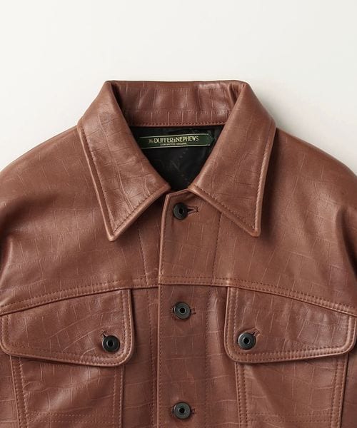 レザーはDUFFERアーカイブに近い風合いを出すために、染色前の原皮段階で型押し加工を施しています。