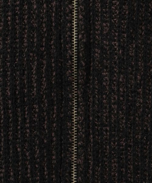 7G機械編みの畦編みをベースに特有のストライプ調を表現しつつ、2色に分けて編める技法を採用。