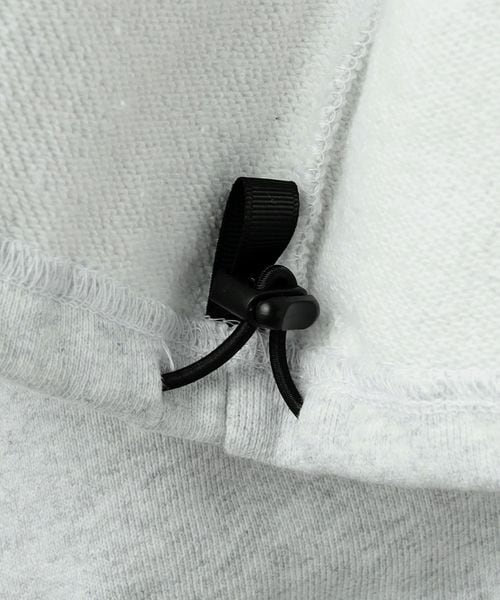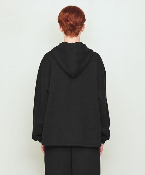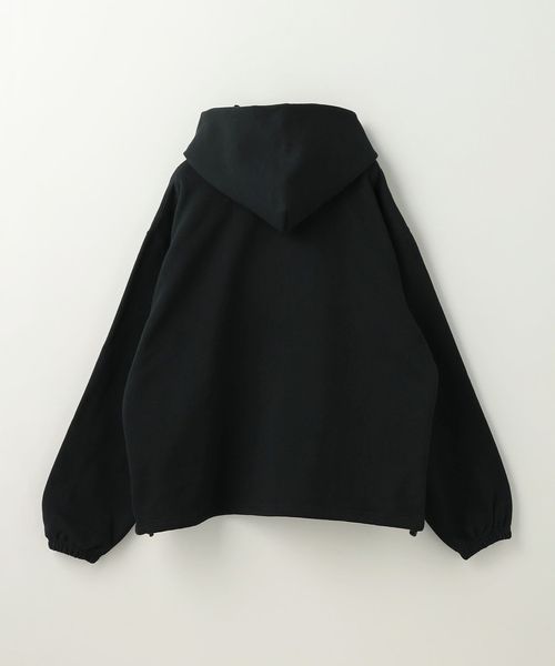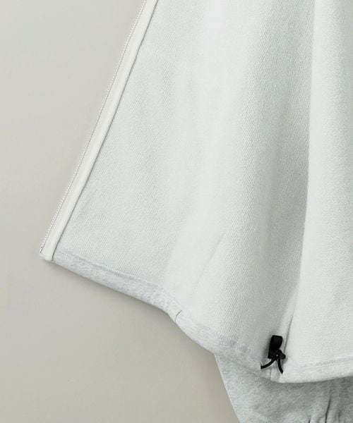 フロントフルジップ、裾はリブなしのドローコード仕様でオーバーサイズシルエット。