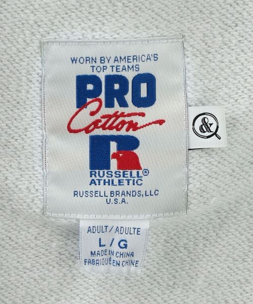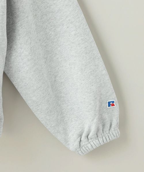 左袖口に<RUSSELL ATHLETIC>ロゴパッチのアクセントを配しています。