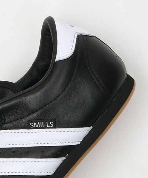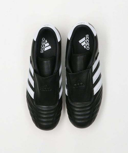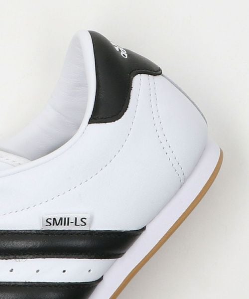 フレキシブルでグリップ力のある非常に薄いラバーアウトソール、前足部のユニークなステッチ、太めのスリーストライプス、シューレースカバーが特徴。