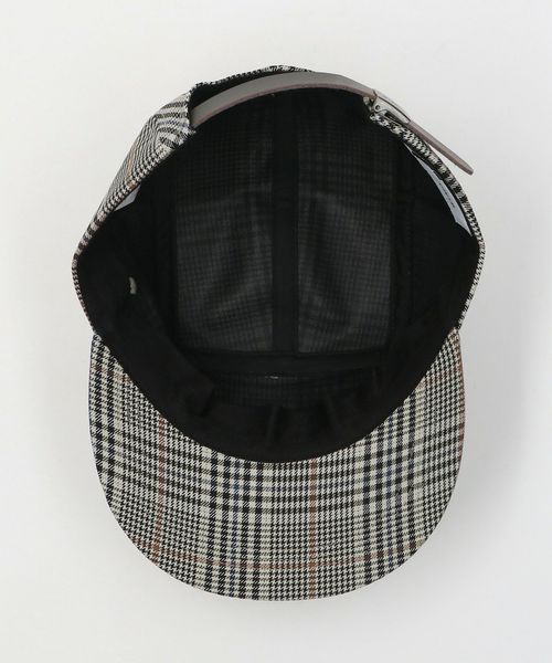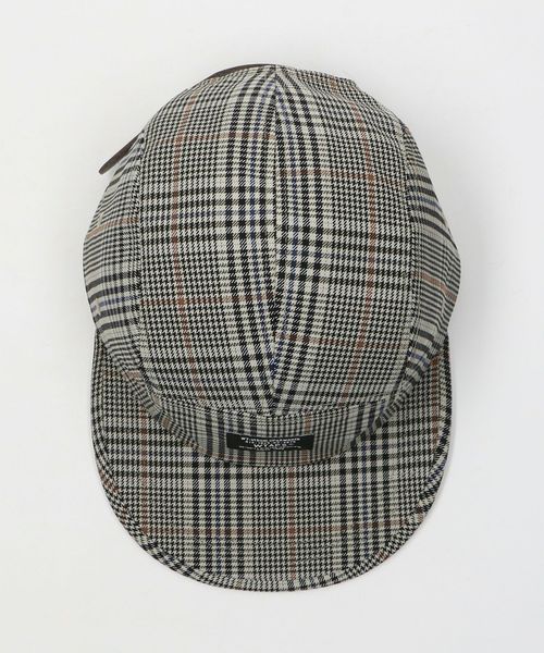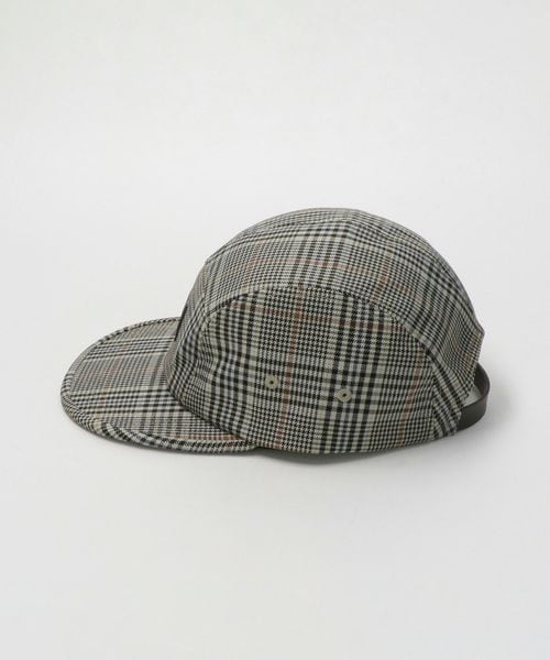 チェックのタスランナイロン生地使用の5パネルキャンプキャップ。