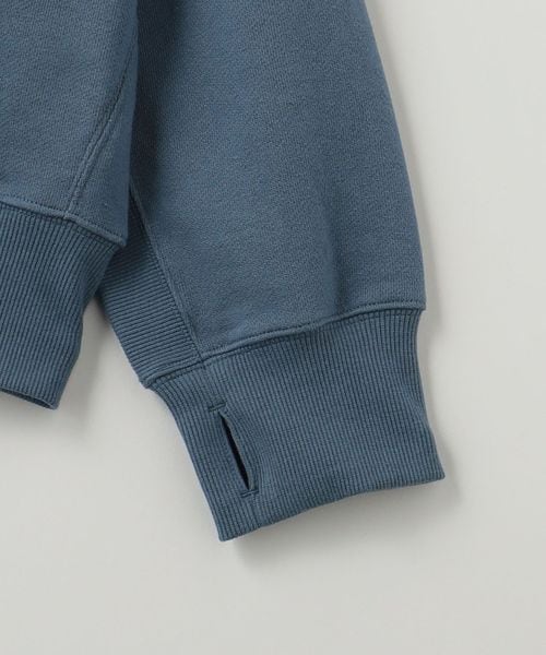 太番手と細番手の糸を組み合わせパイル状に編み、空気を含ませ風合いよく仕上げたコットン素材の裏面を、さらに起毛し、タンブラー工程を入れ、より膨らみをもたせた生地。