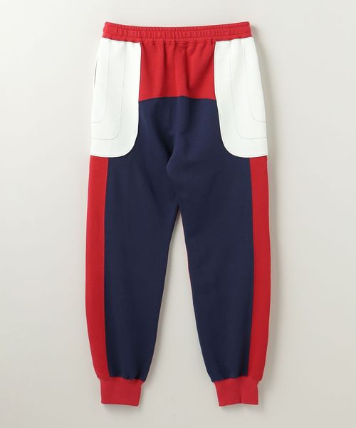 膝やサイドに施されたキルト縫製の補強パッドなど、モーターサイクルパンツのデザインを取り入れたストリングイージーパンツ。
