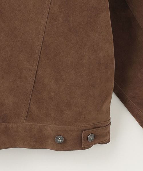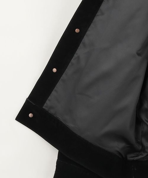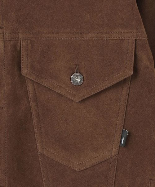 オリジナルの合成皮革を使用したトラッカージャケット。