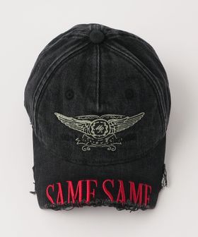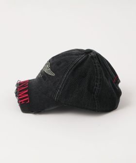 ユーズド加工が施されたベースボールキャップ。