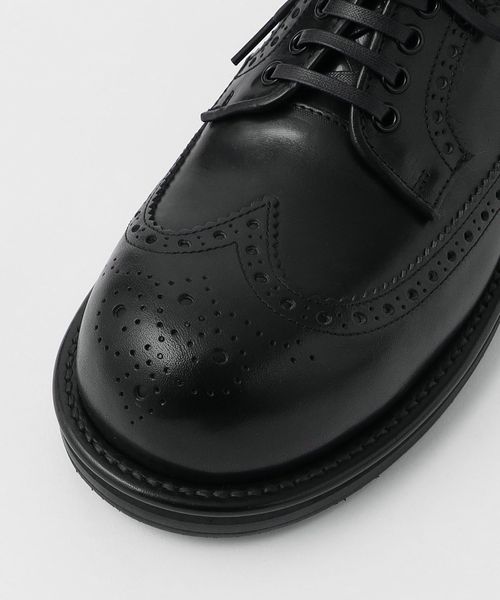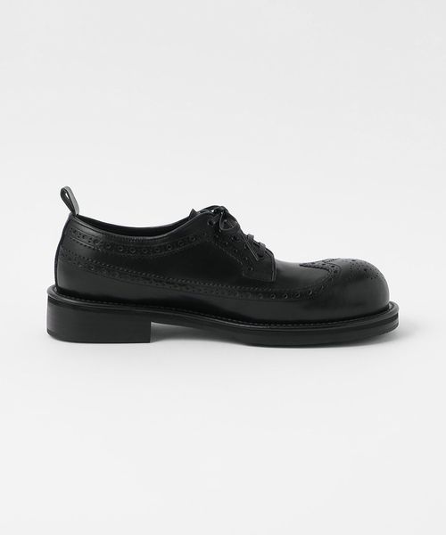 ミリタリーミッキーブーツからインスパイアされた木型を使用したウイングチップシューズ。
